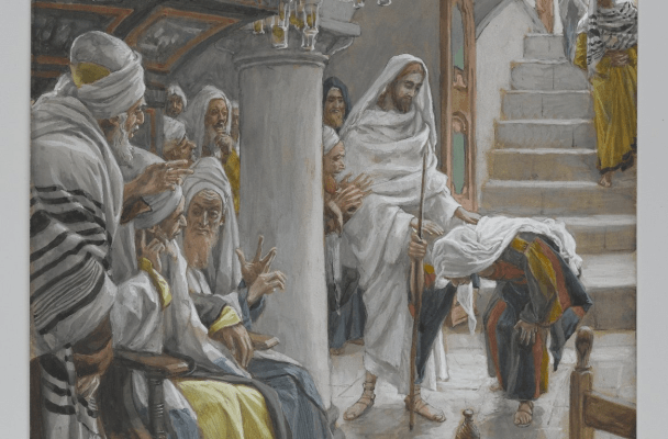 On another Sabbath, Jesus finds in the synagogue a man with a withered right hand (Luke 6:6–11). For this laborer, the deformity must mean unemployment and possibly impoverishment. Jesus calls the man to stretch out his hand, as Moses was asked to do to convince the oppressed Israelites (Exodus 4:6–7). Jesus understands this man’s suffering as God does His people’s suffering in Egypt. Jesus’ healing of this man’s hand is a sign of God’s deliverance from oppression, and the echoes of freedom are apparent.