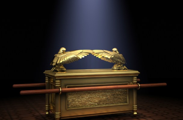 Ark of the Covenant inside the Holy of Holies illuminated with a shaft of light from above